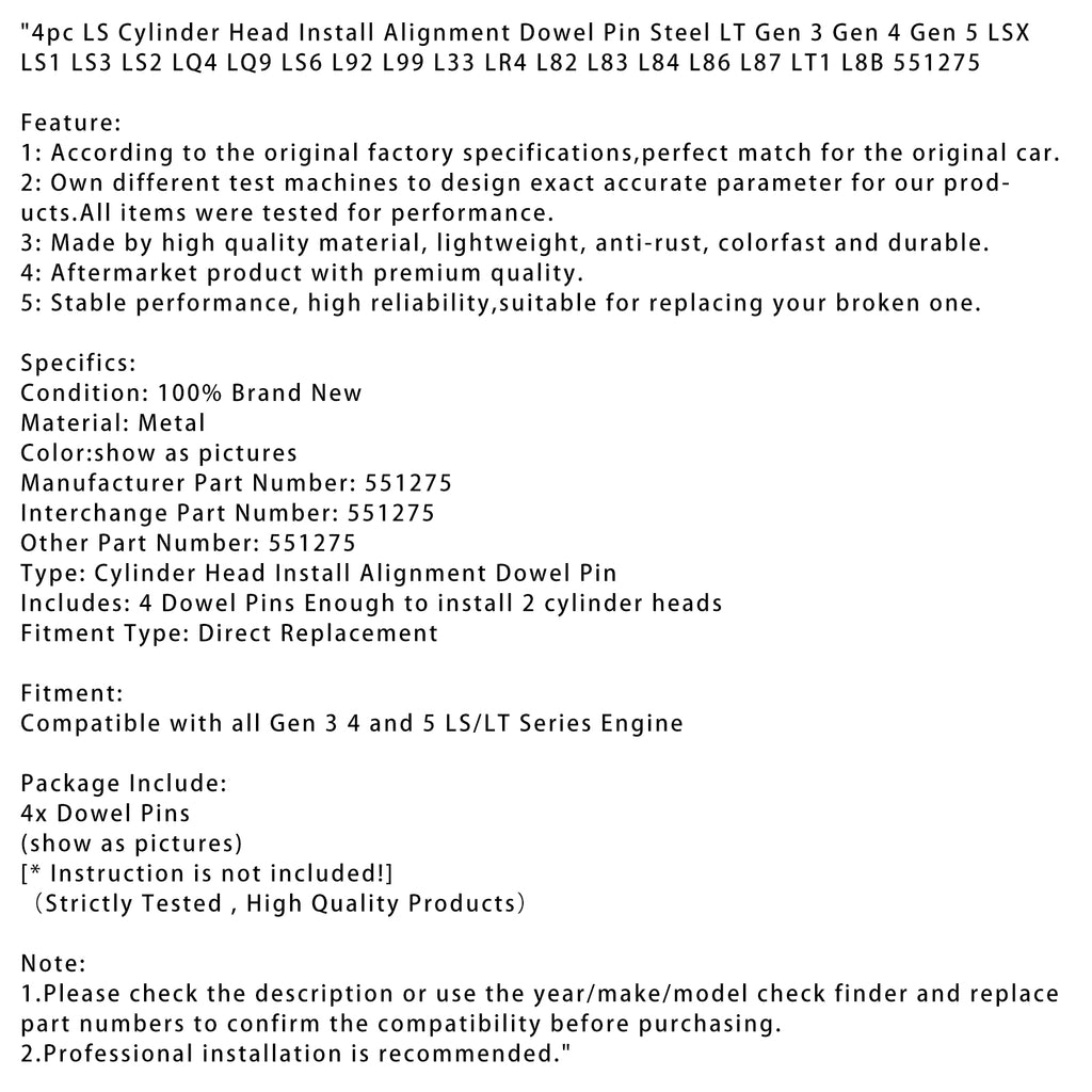 Pasador de alineación de culata LS de 4 piezas, acero, para LT Gen 3, Gen 4, Gen 5, LSX, LS1, LS3, LS2, LQ4, LQ9, LS6, L92, L99, L33, LR4, L82, L83, L84, L86, L87, LT1, L8B, 551275