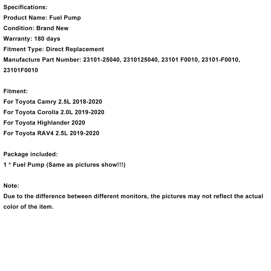Para Toyota Camry 2.5L 2018-2020