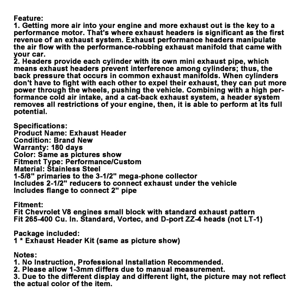 Compatible con motores Chevrolet V8 de bloque pequeño con patrón de escape estándar
