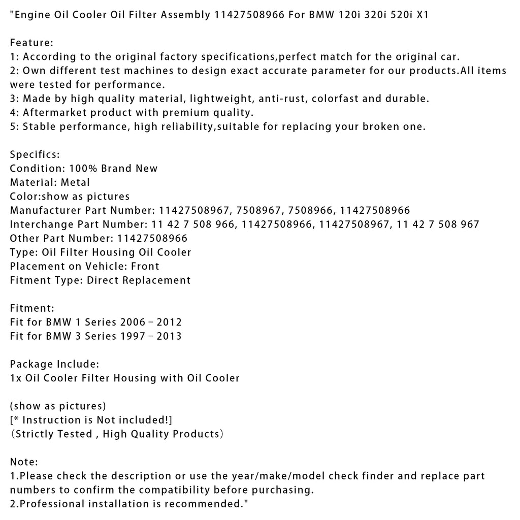 Enfriador de aceite del motor y filtro de aceite 11427508966 para BMW 120i, 320i, 520i y X1