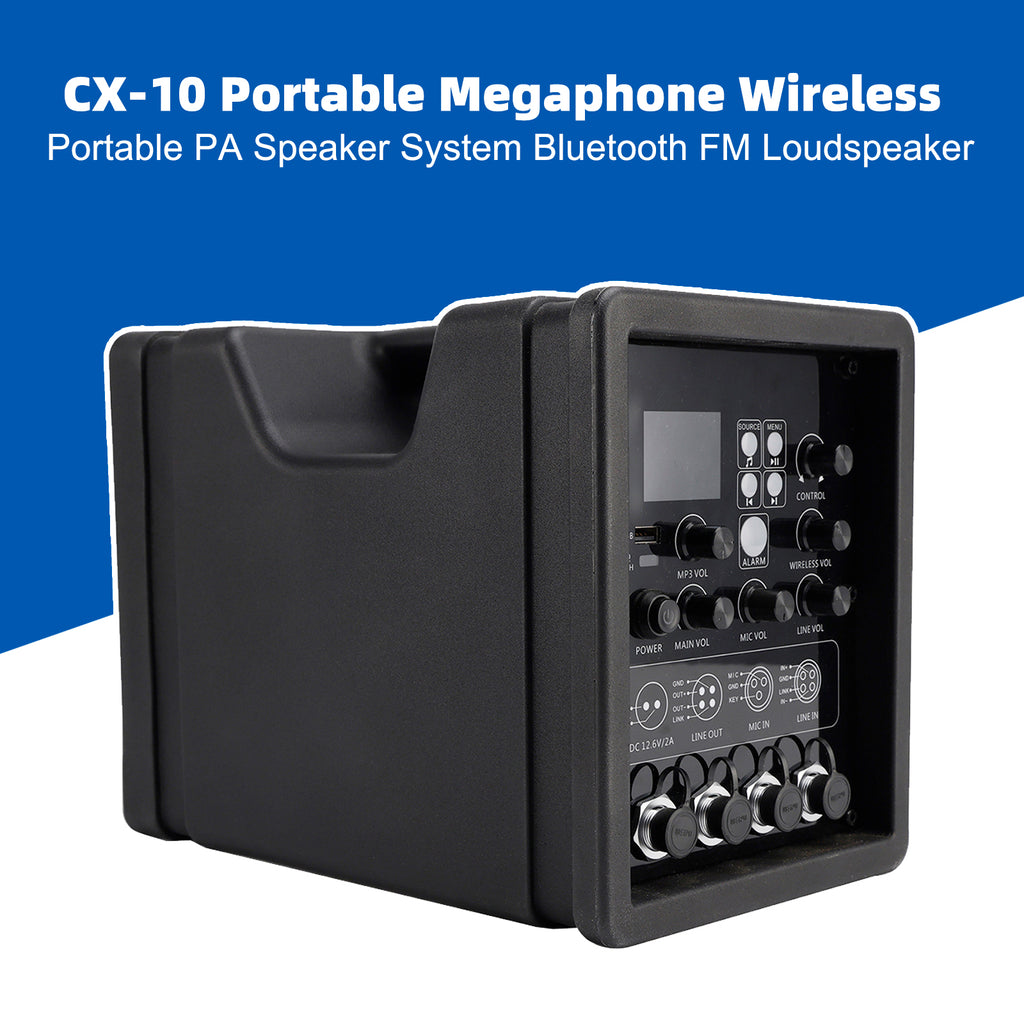 Megáfono portátil CX-10, sistema de altavoces inalámbricos portátiles con Bluetooth y FM.