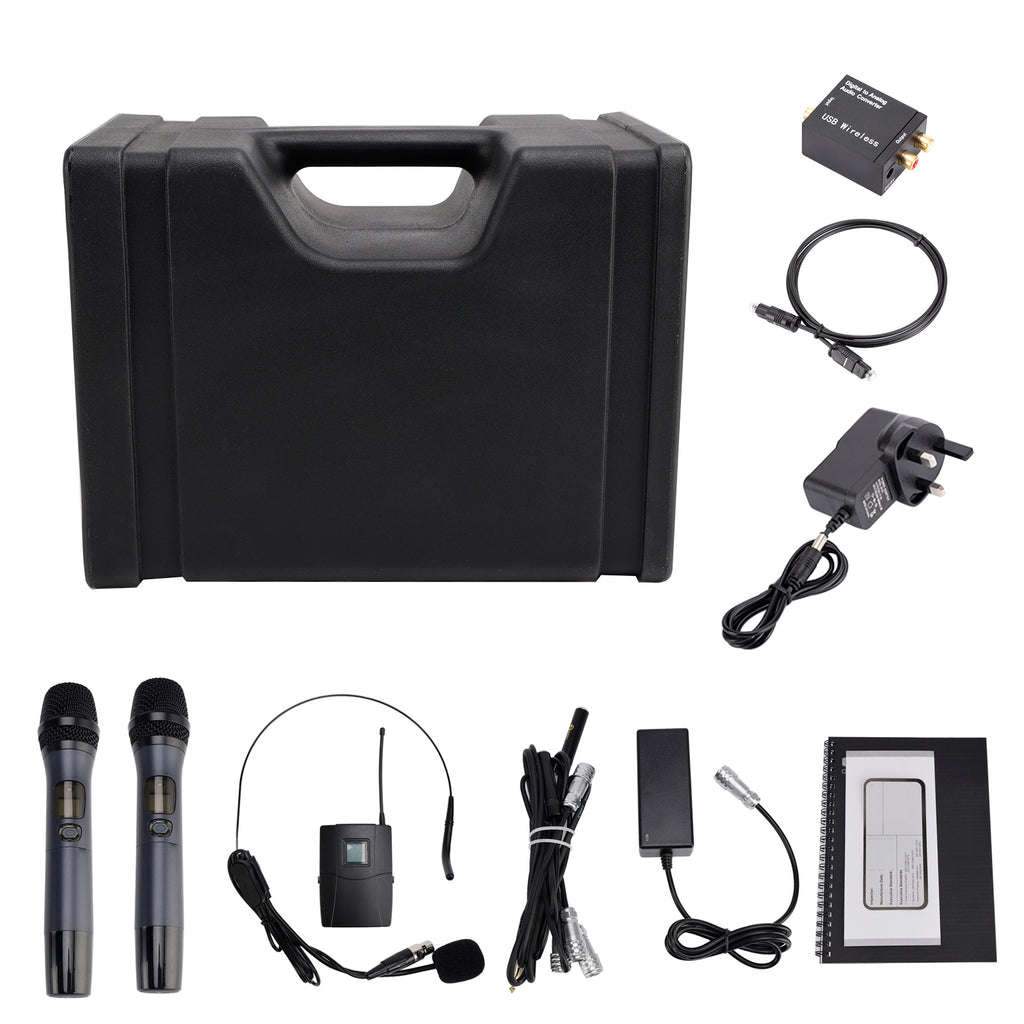 Micrófono inalámbrico: Banda UHF (2 juegos) (de mano y de diadema)