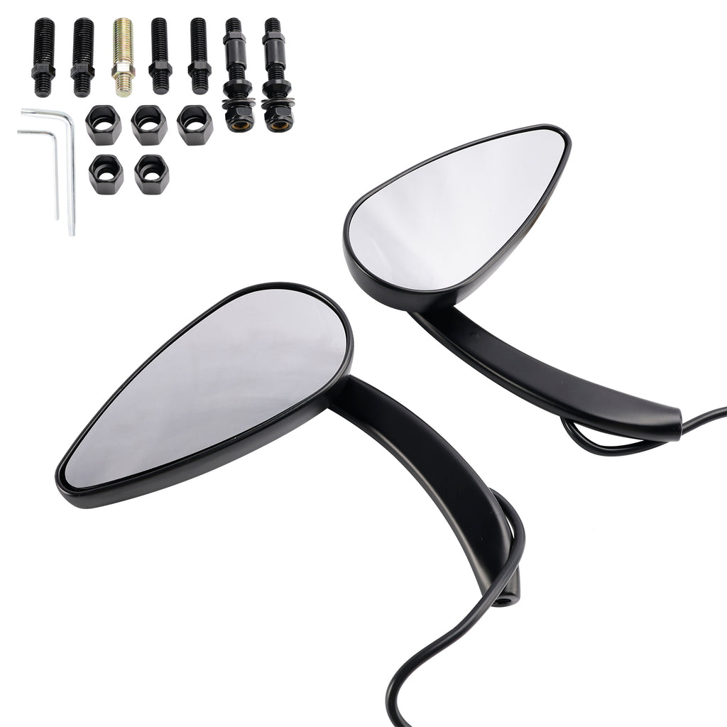 Reemplazo directo de espejos OEM en modelos con 5/16" Orificio de montaje de 1/4" (M8), también viene con adaptadores M10.