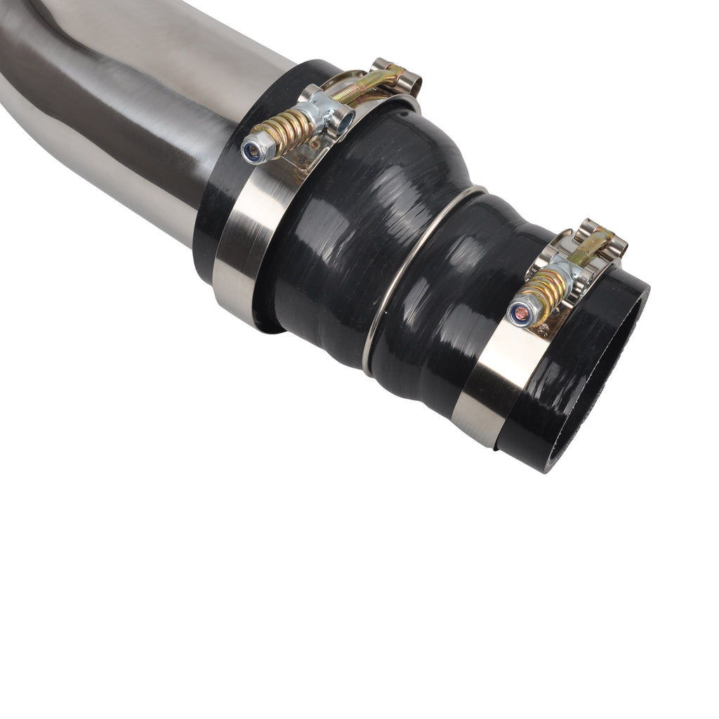 Tubo plateado: Fabricado en aluminio doblado con mandril y acabado pulido. Un acoplamiento de aluminio 6061 100 % mecanizado por CNC le permite conservar los componentes de emisiones originales de su camión y agilizar su instalación.