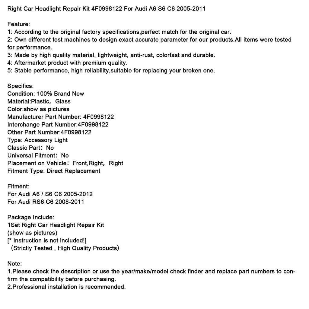 Kit de reparación de faros delanteros derecho 4F0998122 para Audi A6 S6 C6 2005-2011