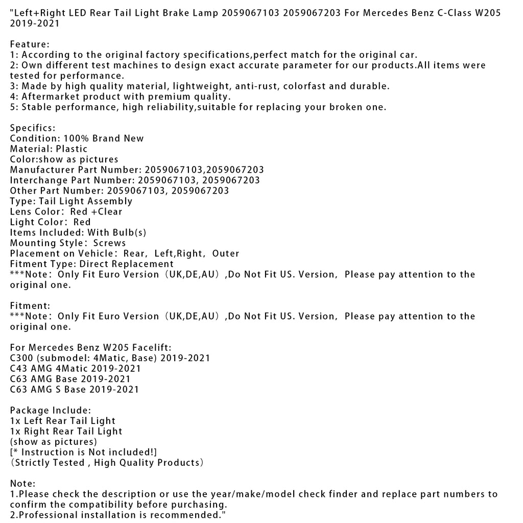 Left+Right LED Rear Tail Light Brake Lamp 2059067103 2059067203 For Mercedes Benz C-Class W205 2019-2021