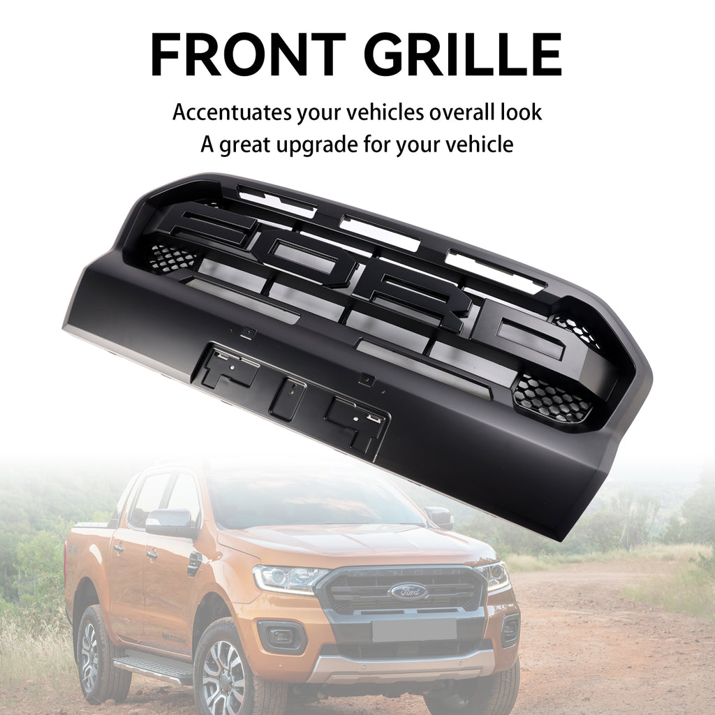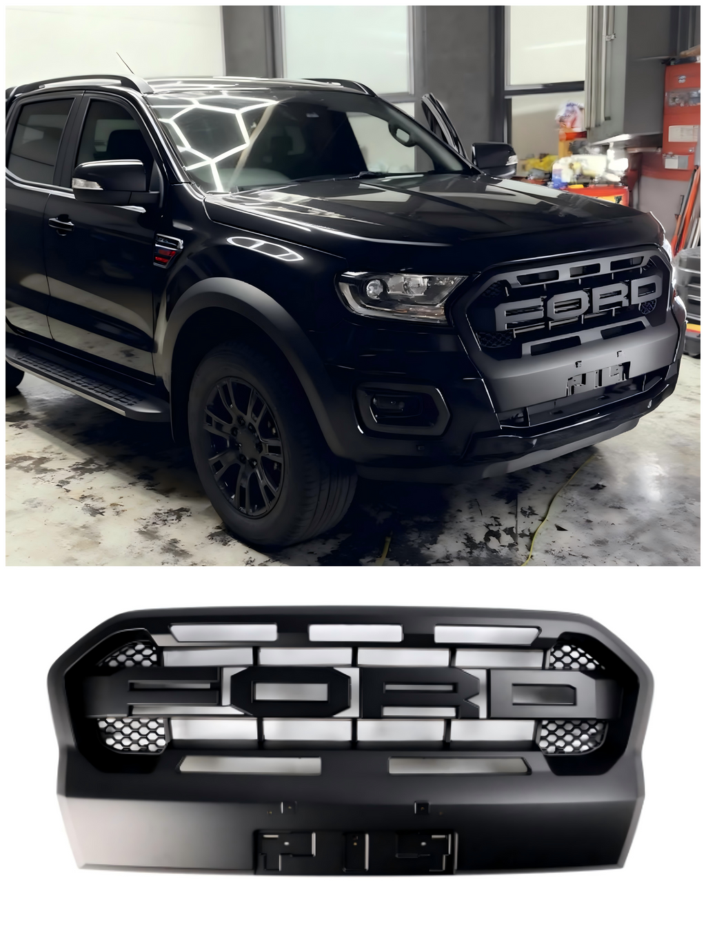 Rejilla de parachoques delantera estilo Ranger Raptor en negro mate, compatible con Ford Ranger T8 (2019-2023)