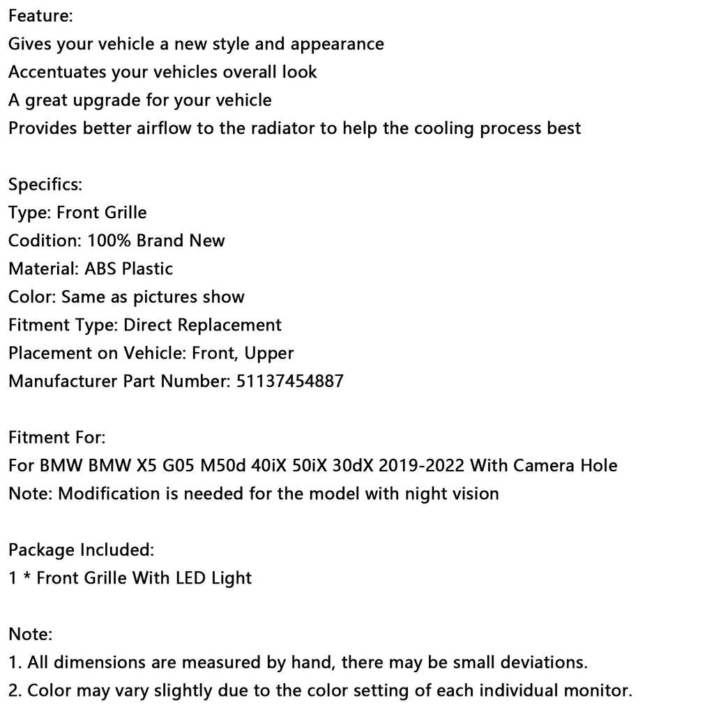 Para BMW X5 G05 M50d 40iX 50iX 30dX 2019-2022 con orificio para cámara