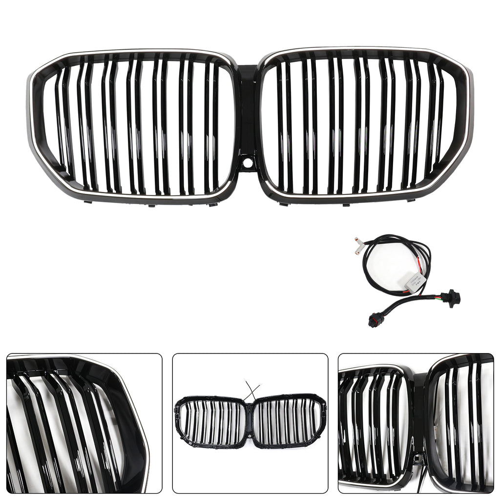 Parrilla delantera de riñón negra de doble lama compatible con BMW X5 G05 2019-2022 M-Performance