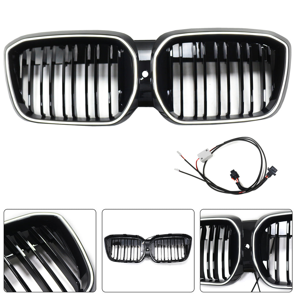 Parrilla delantera de riñón negra de doble lama para BMW IX3 G08 LCI 2022-2024