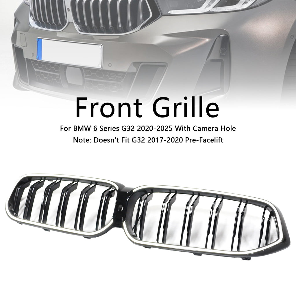 Parrilla delantera de riñón doble negra de lamas dobles para BMW Serie 6 G32 2020-2025
