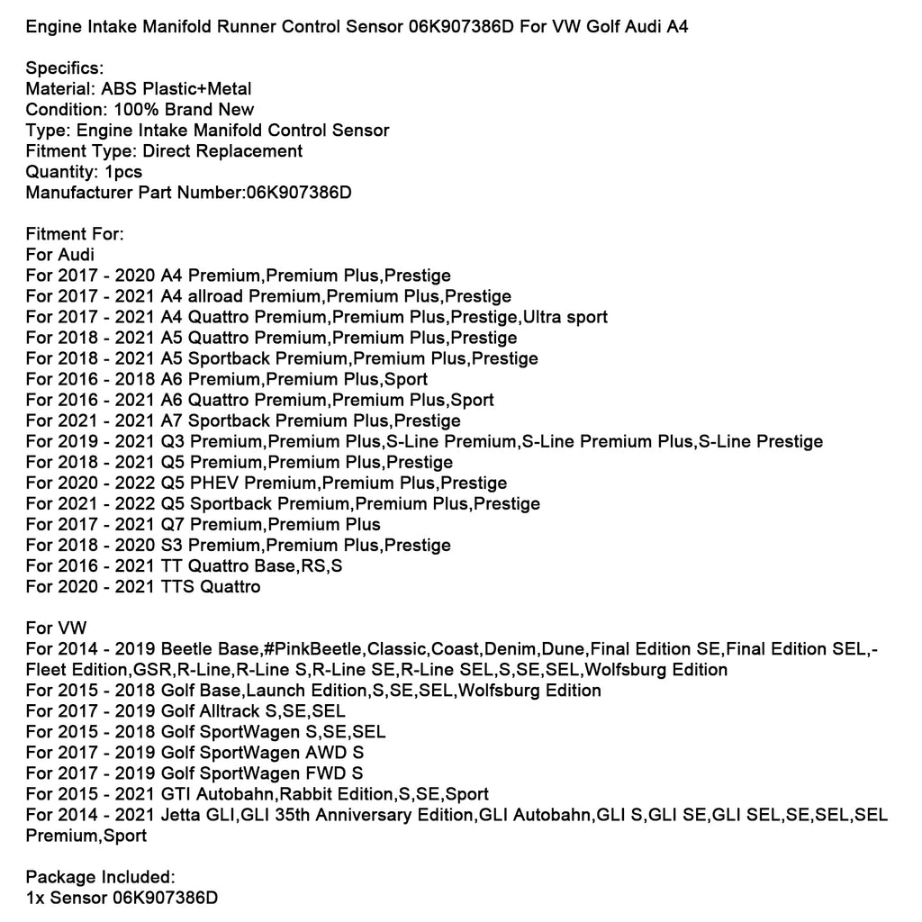Sensor de control del colector de admisión del motor 06K907386D para VW Golf Audi A4