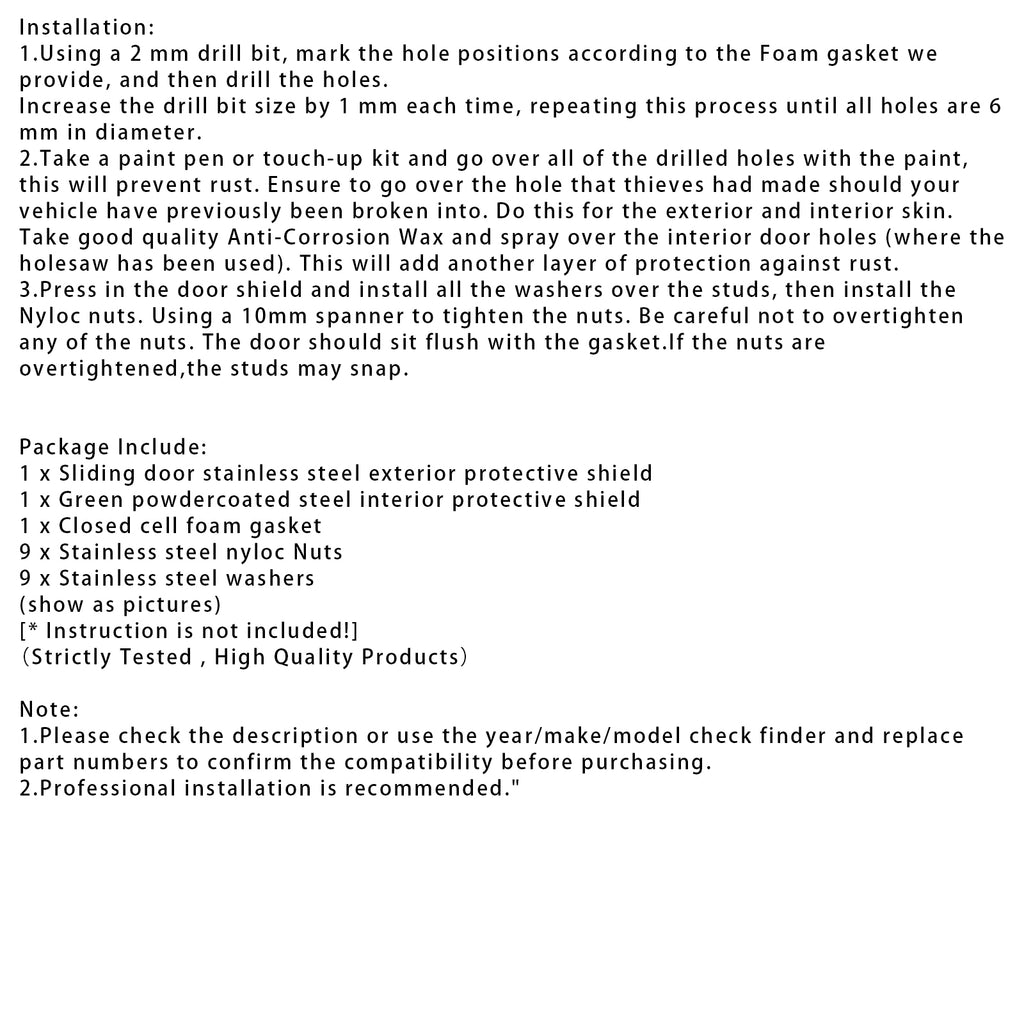 Type:Sliding Door Theft Shield Security Guard Plate Kit