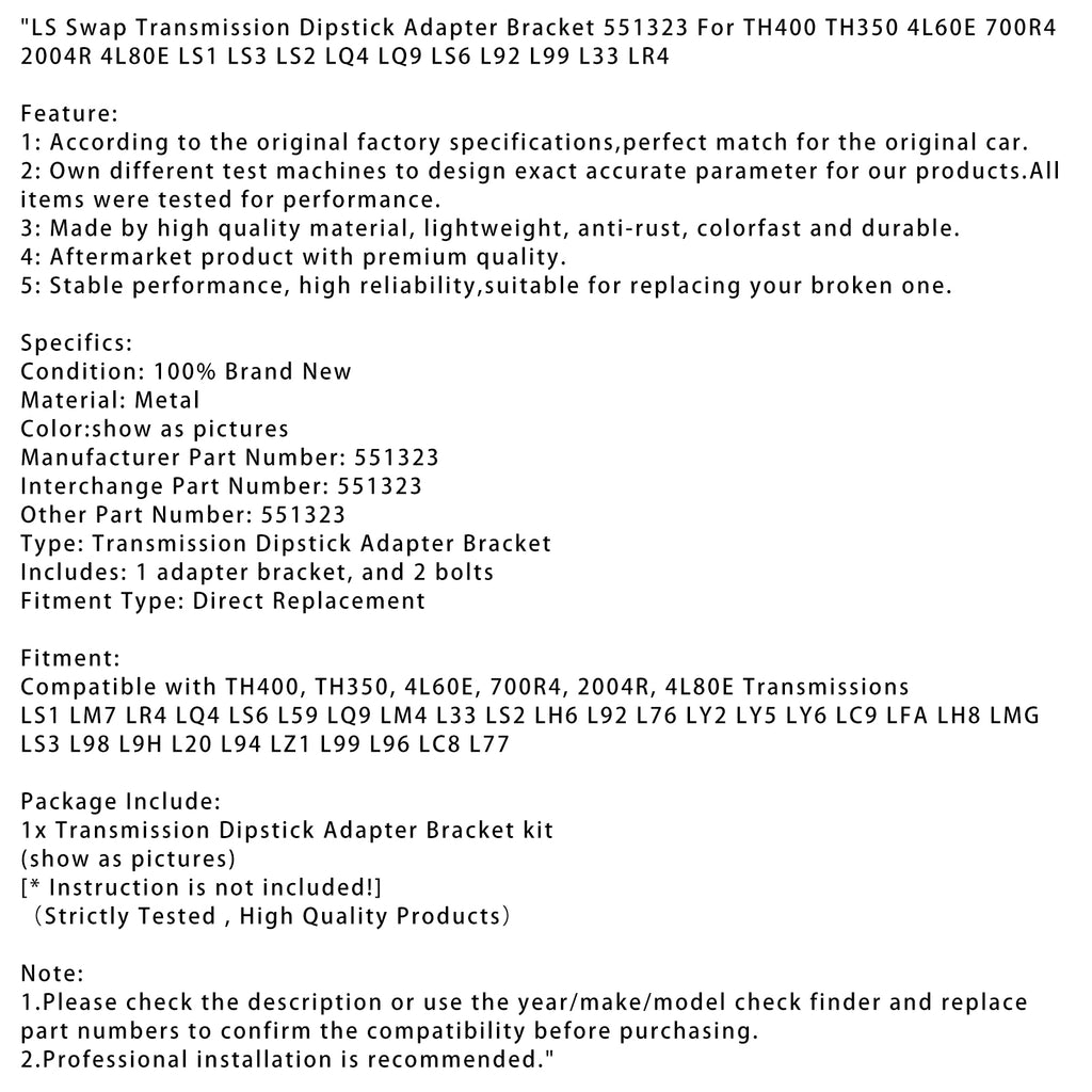 Soporte adaptador de varilla de medición de transmisión LS Swap 551323 para TH400, TH350, 4L60E, 700R4, 2004R, 4L80E, LS1, LS3, LS2, LQ4, LQ9, LS6, L92, L99, L33 y LR4