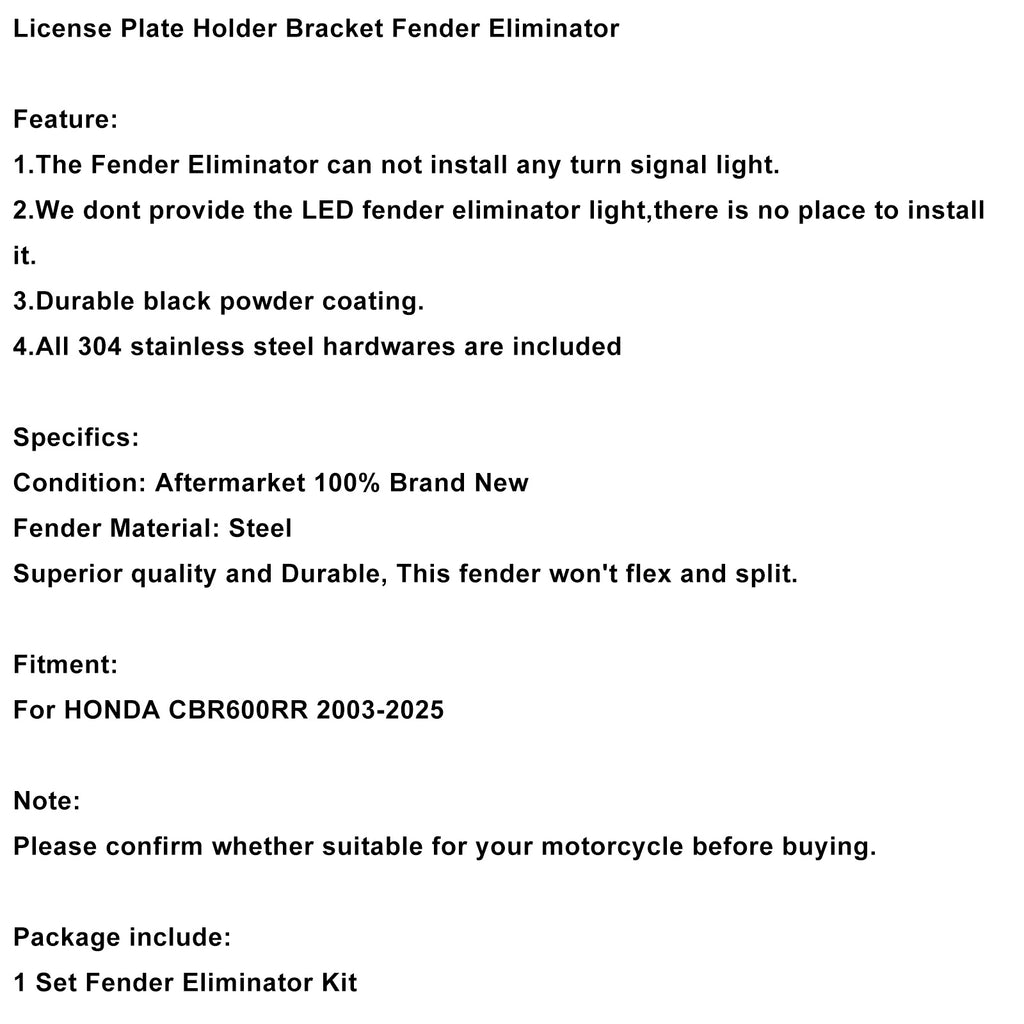 Soporte de placa de matrícula Eliminador de guardabarros Ajuste Para HONDA CBR600RR 2003-2025