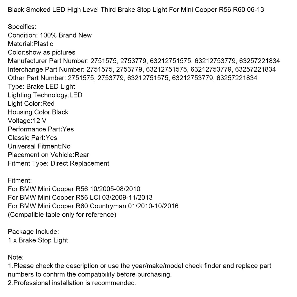 Tercera luz de freno LED ahumada negra de alto nivel para Mini Cooper R56 R60 06-13