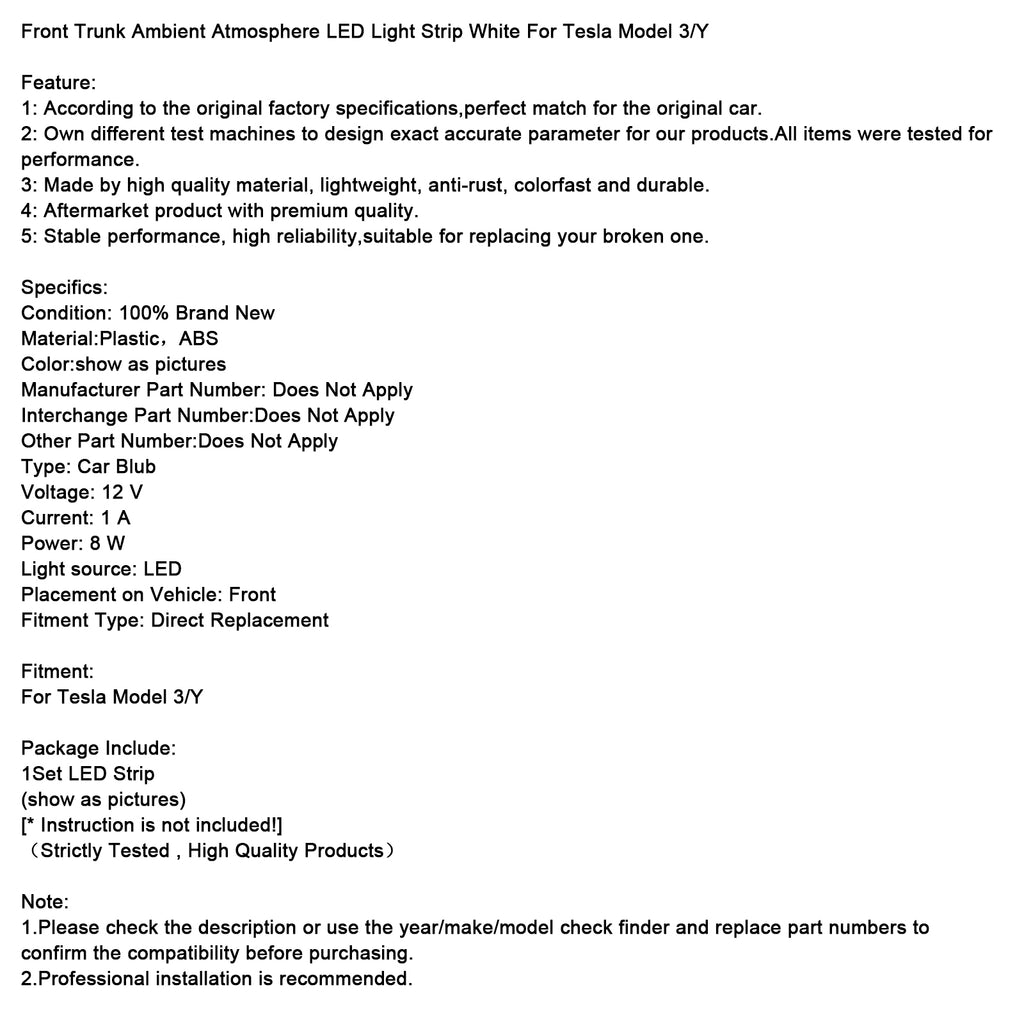 Tira de luz LED ambiental blanca para maletero delantero para Tesla Model 3/Y