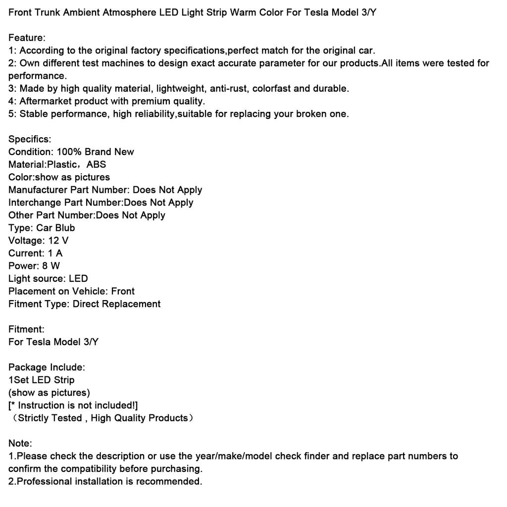 Tira de luz LED ambiental para maletero delantero, color cálido, para Tesla Model 3/Y