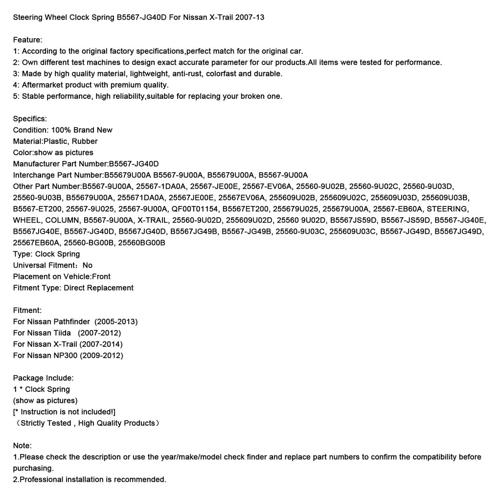 Resorte del reloj del volante B5567-JG40D para Nissan X-Trail 2007-13
