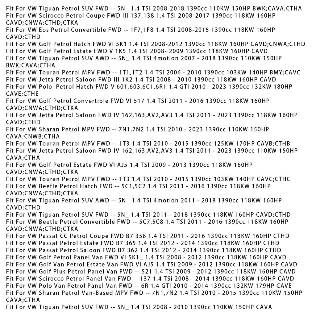 Fit For VW Golf Petrol Hatch FWD VI 5K1 1.4 TSI 2008-2012 1390cc 118KW 160HP CAVD;CNWA;CTHD