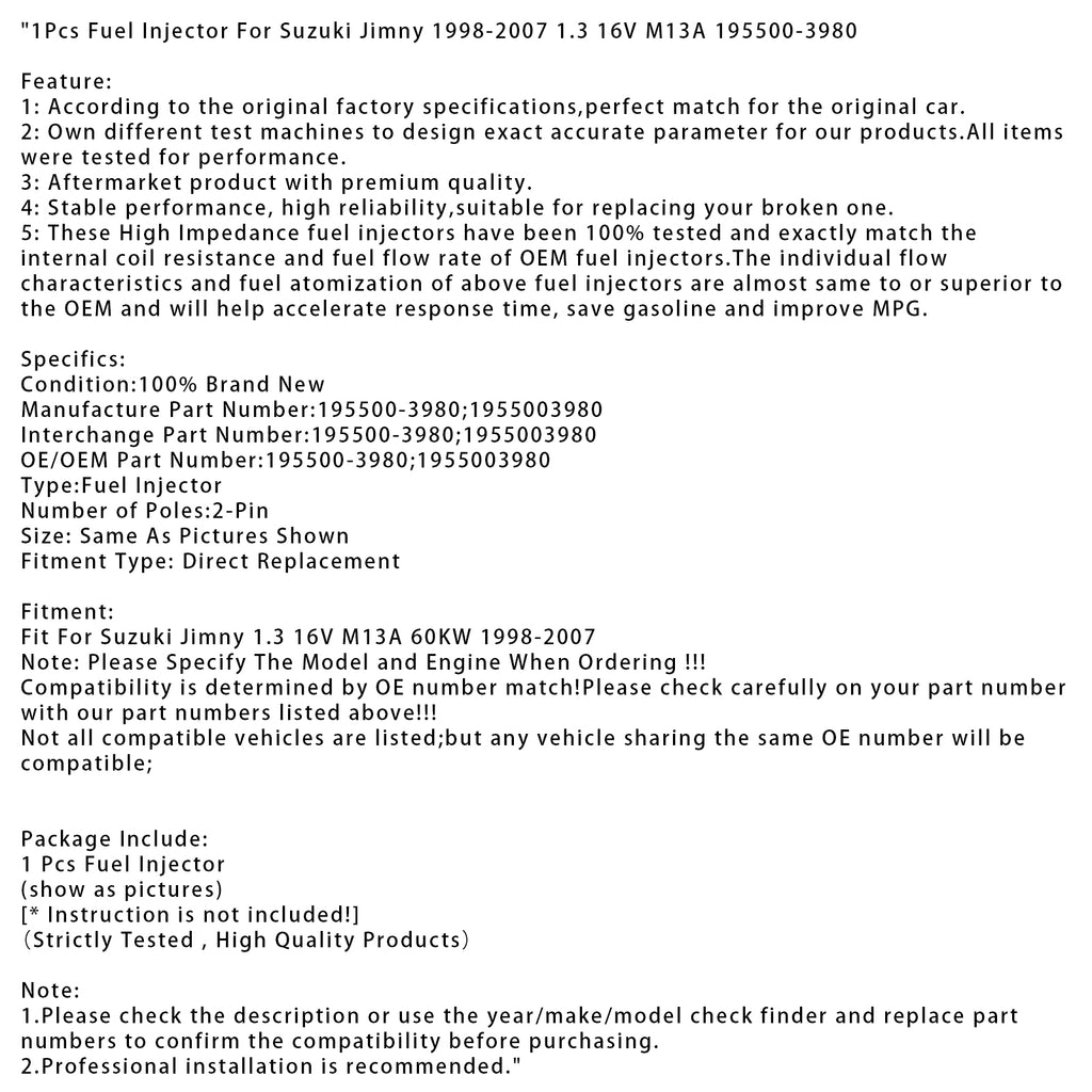 1Pcs Fuel Injector Fit For Suzuki Jimny 1998-2007 1.3 16V M13A 195500-3980