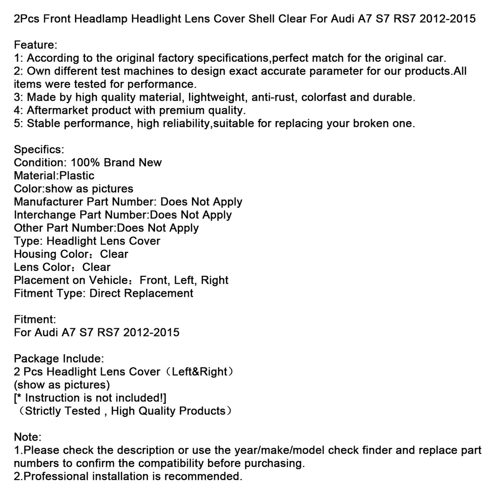 Lot de 2 coques transparentes pour phares avant, pour Audi A7 S7 RS7 2012-2015