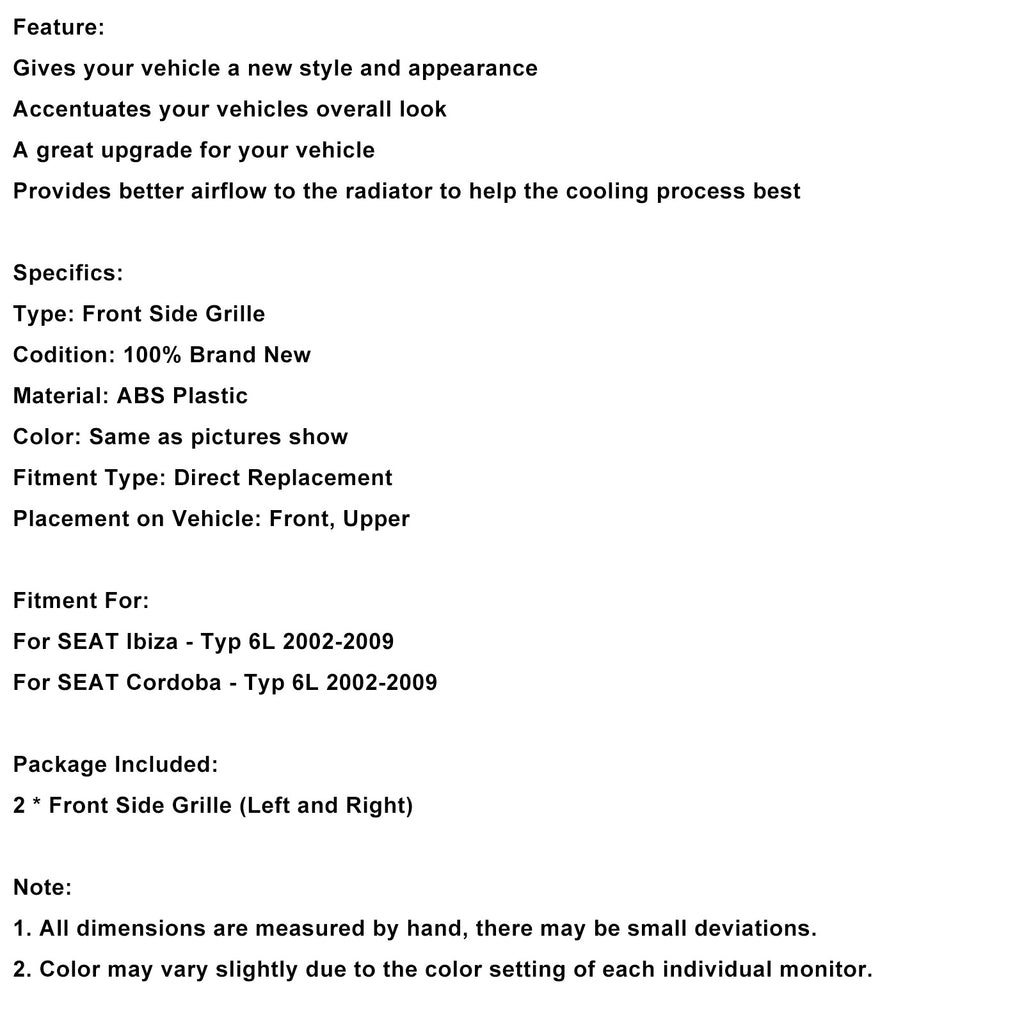 Calandre avant en nid d'abeille 2 pièces pour Seat Ibiza Cordoba 6L 2002-2009 FR