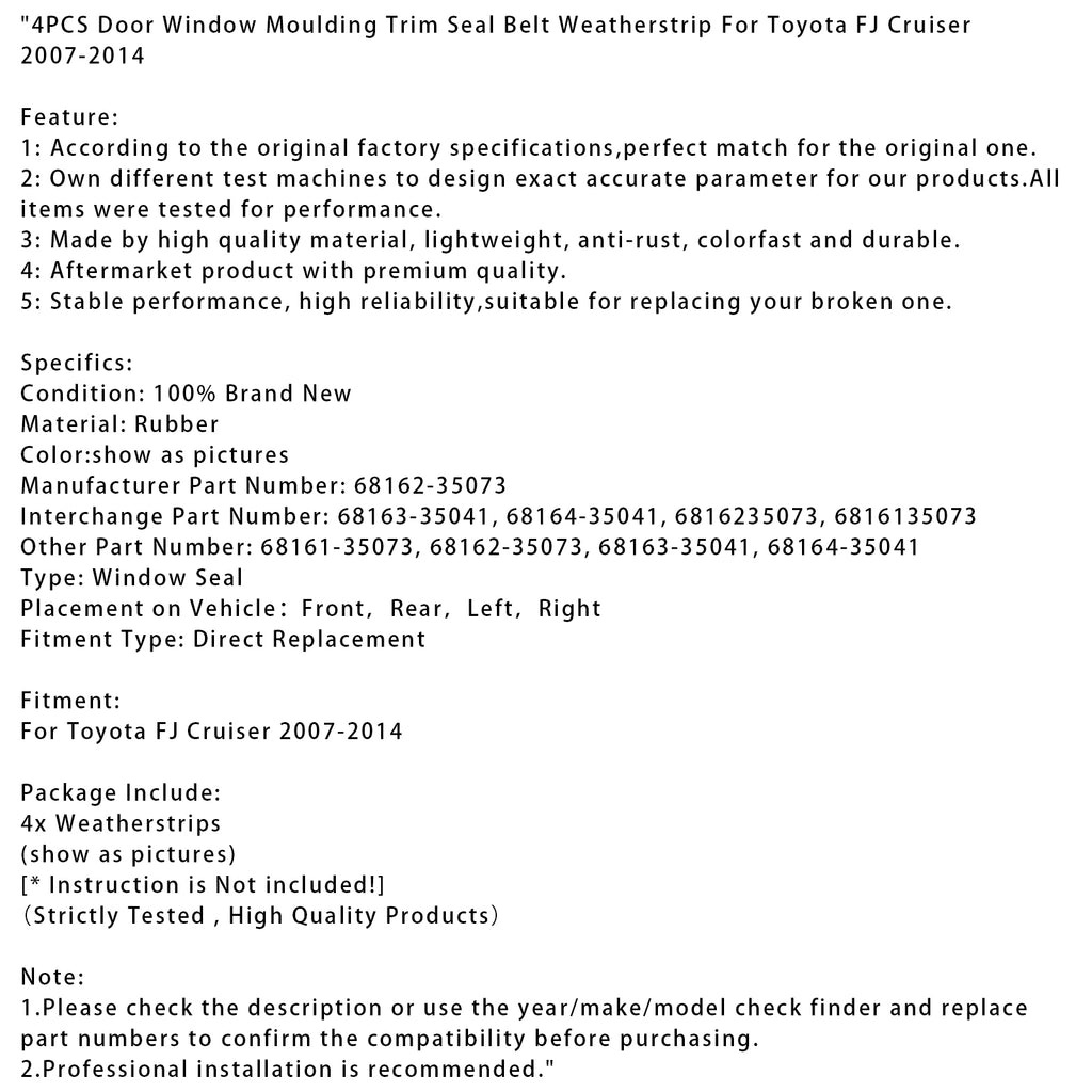 4PCS Door Window Moulding Trim Seal Belt Weatherstrip For Toyota FJ Cruiser 2007-2014