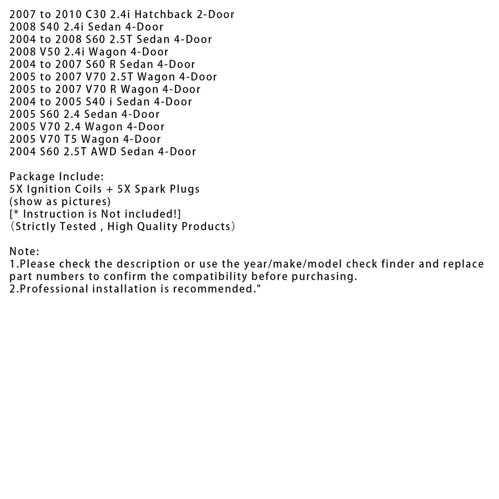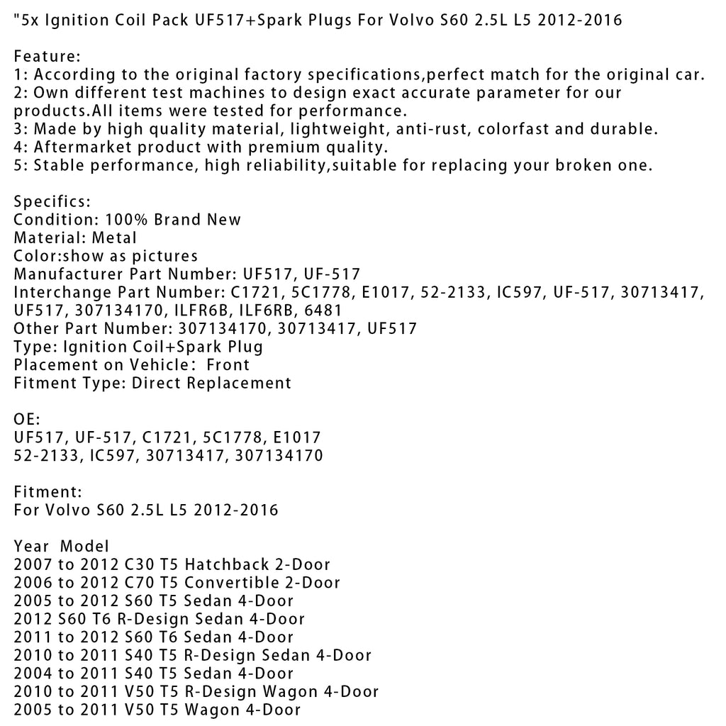Pack de 5 bobines d'allumage UF517 + bougies d'allumage pour Volvo S60 2.5L L5 2012-2016