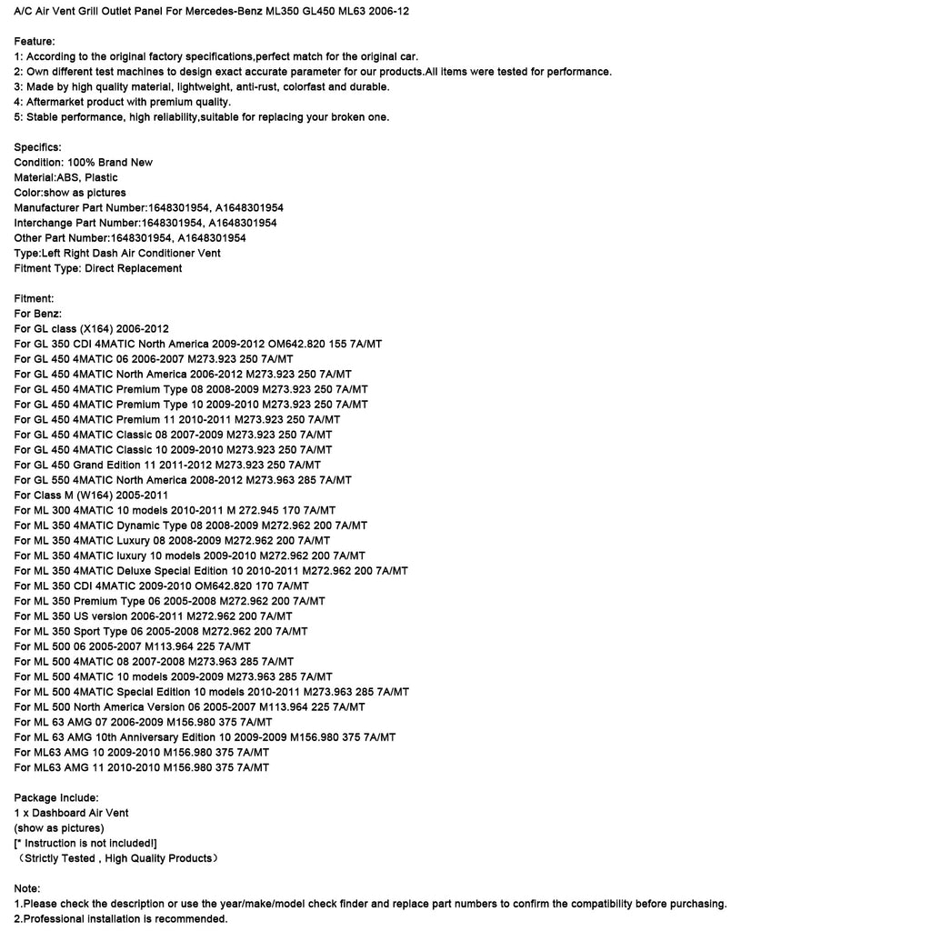A/C Air Vent Grill Outlet Panel For Mercedes-Benz ML350 GL450 ML63 2006-12