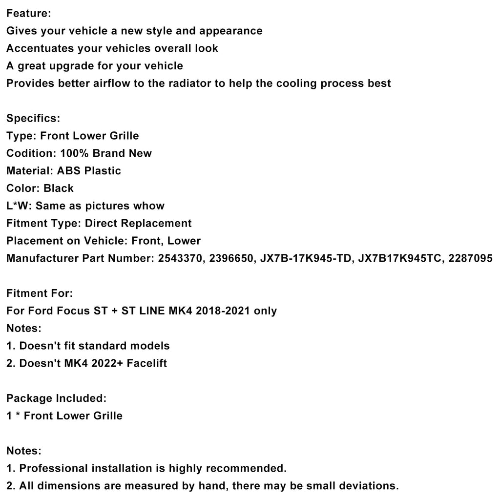 Calandre inférieure de pare-chocs avant JX7B-17K945-TD pour Ford Focus MK4 2018-2021 ST