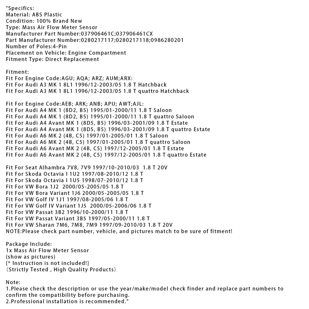 Capteur de débitmètre d'air massique pour Audi A3 A4 A6 1.8T VW Jetta Passat 0280217117