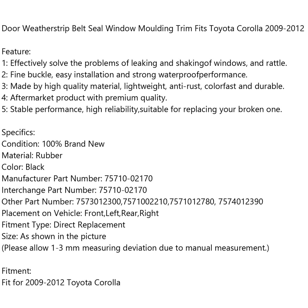 2009-2013 Toyota Corolla Porte Weatherstrip CEULLE Sceau de fenêtre Moulage de fenêtre 75710-02170