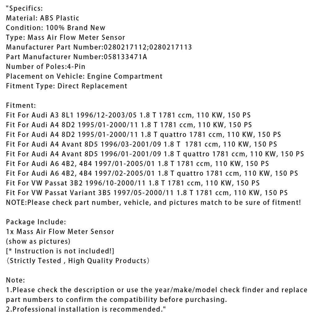 Capteur de débitmètre d'air massique pour Audi A3 A4 VW Passat 1.8T 0280217112