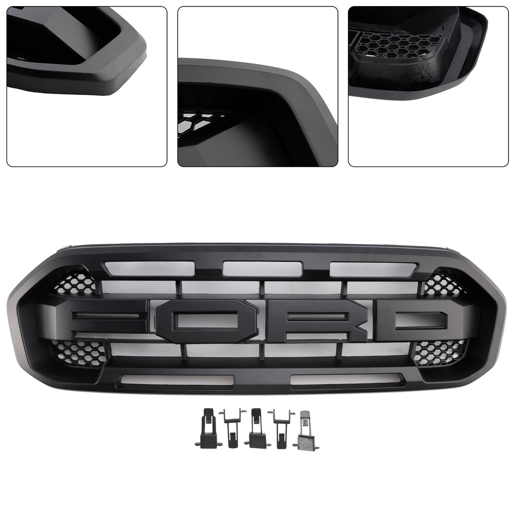Grille de pare-chocs avant style Raptor pour Ford Ranger 2019-2023, noire