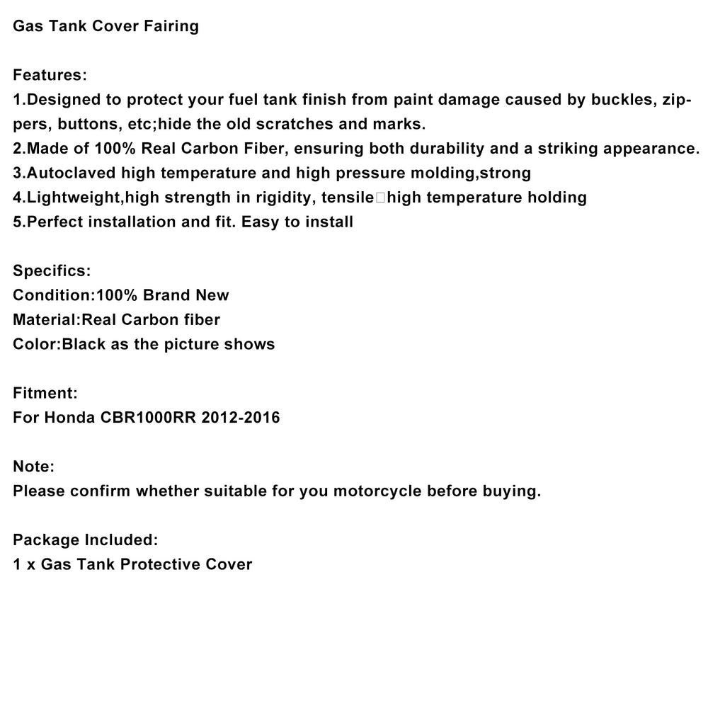 Real Carbon Fiber Tank Cover Fairing For Honda CBR1000RR 2012-2016