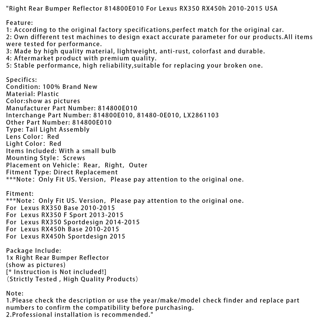Right Rear Bumper Reflector 814800E010 For Lexus RX350 RX450h 2010-2015 USA