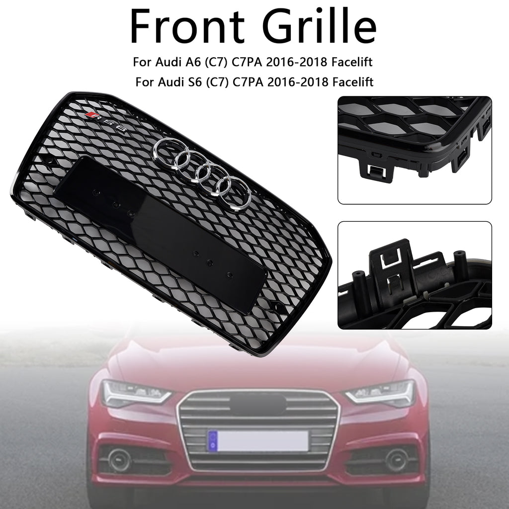 Calandre avant en nid d'abeille style RS6 pour Audi A6 S6 C7 2016-2018, noire