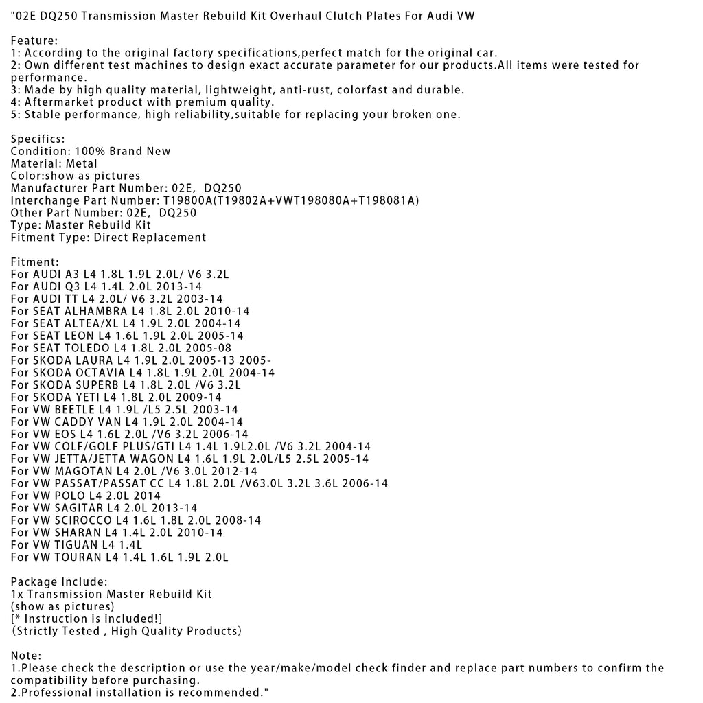Kit de reconstruction de transmission principale 02E DQ250, révision des disques d'embrayage pour Audi VW