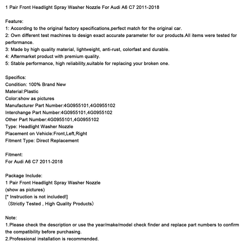 1 Pair Front Headlight Spray Washer Nozzle For Audi A6 C7 2011-2018
