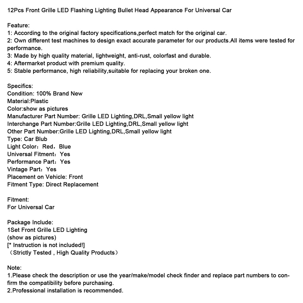Lot de 12 feux clignotants à LED pour calandre avant, aspect tête de balle, universels, pour voiture