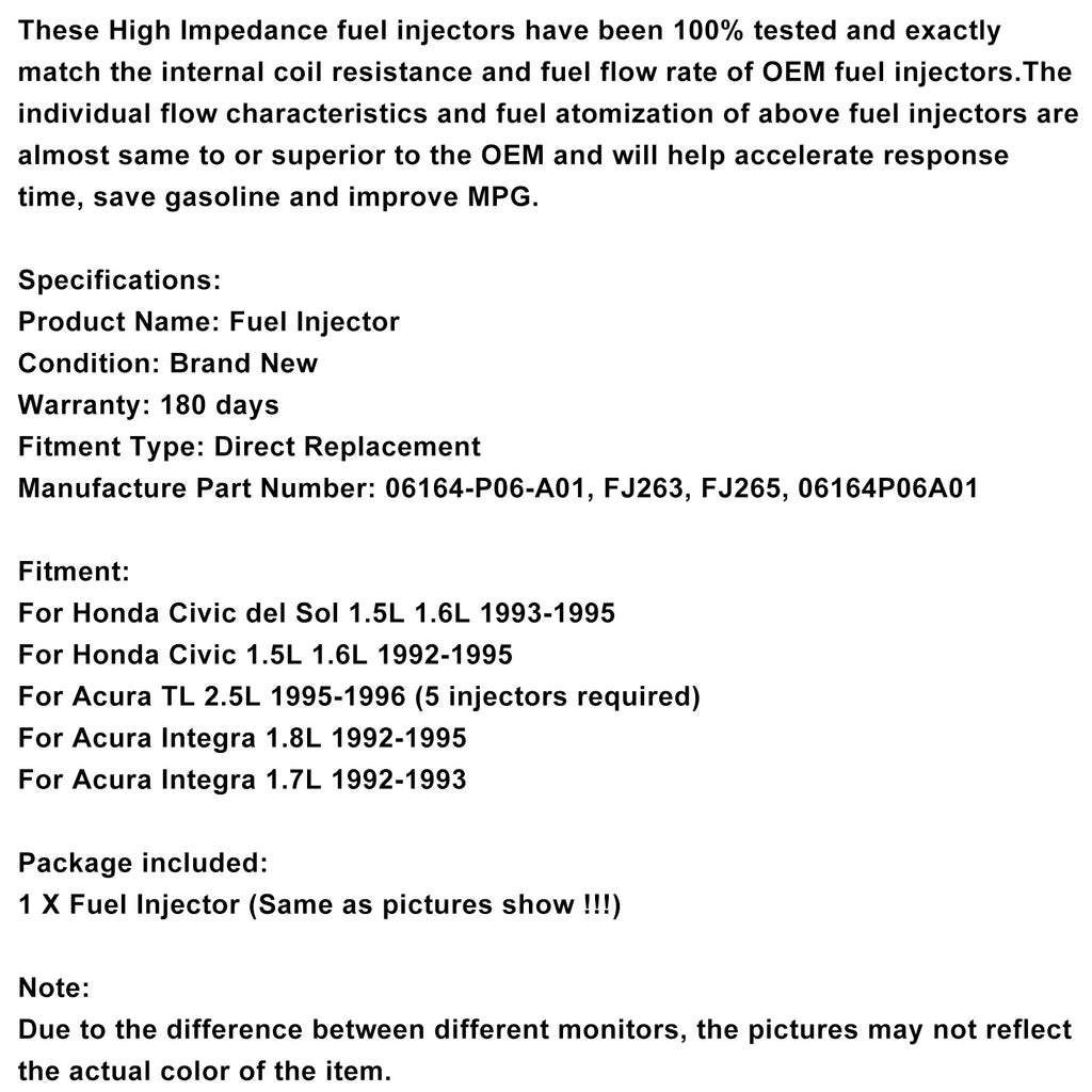 1pcs injecteur de carburant 06164-P06-A01 Fit Civic del Sol 1.5L 1.6L Integra 1.7L 1.8L