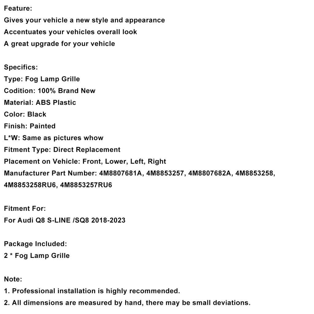 Lot de 2 garnitures de pare-chocs avant 4M8807682A pour Audi Q8 S-Line SQ8 2018-2023