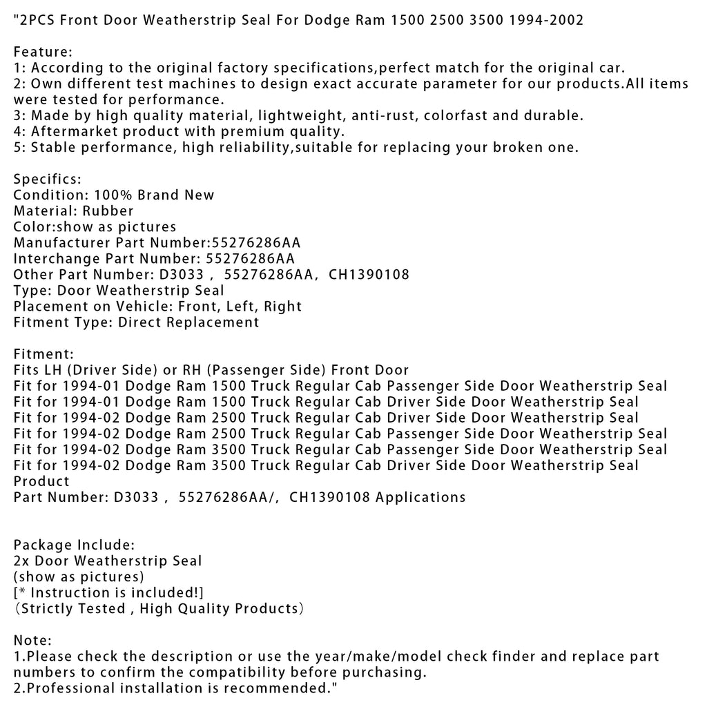 Joint d'étanchéité pour porte avant, 2 pièces, pour Dodge Ram 1500 2500 3500 1994-2002