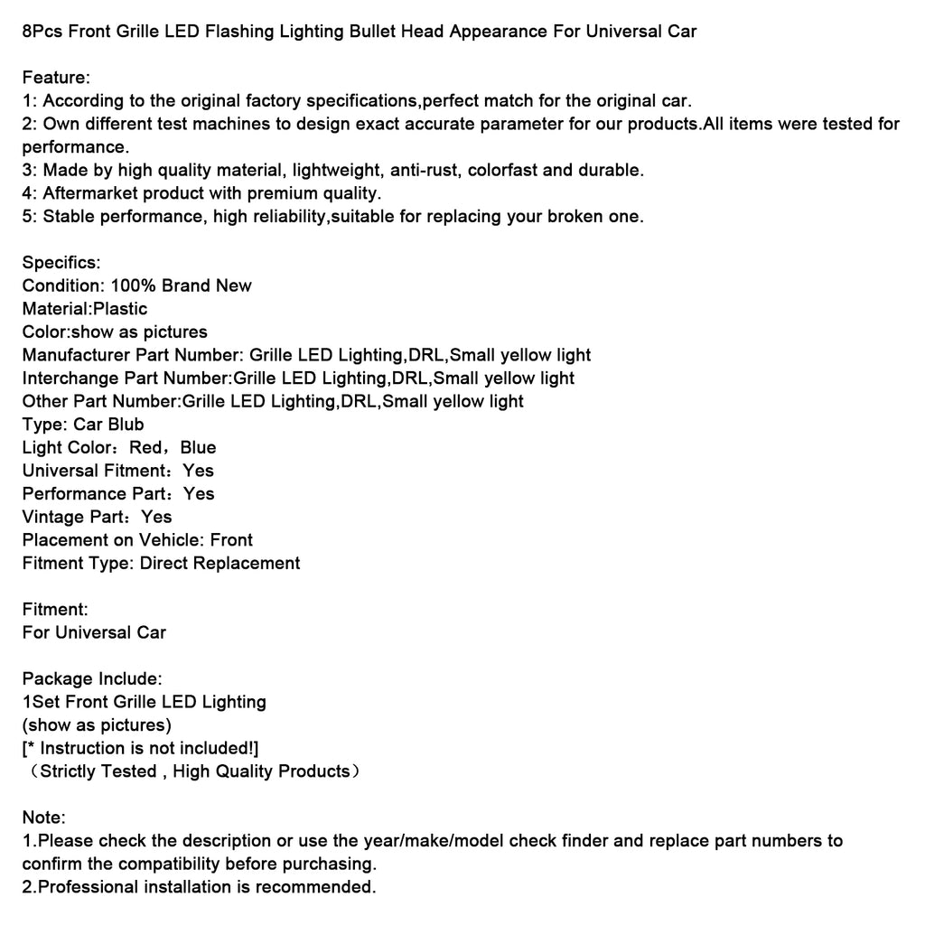 Lot de 8 feux clignotants à LED pour calandre avant, style tête de balle, universels, pour voiture
