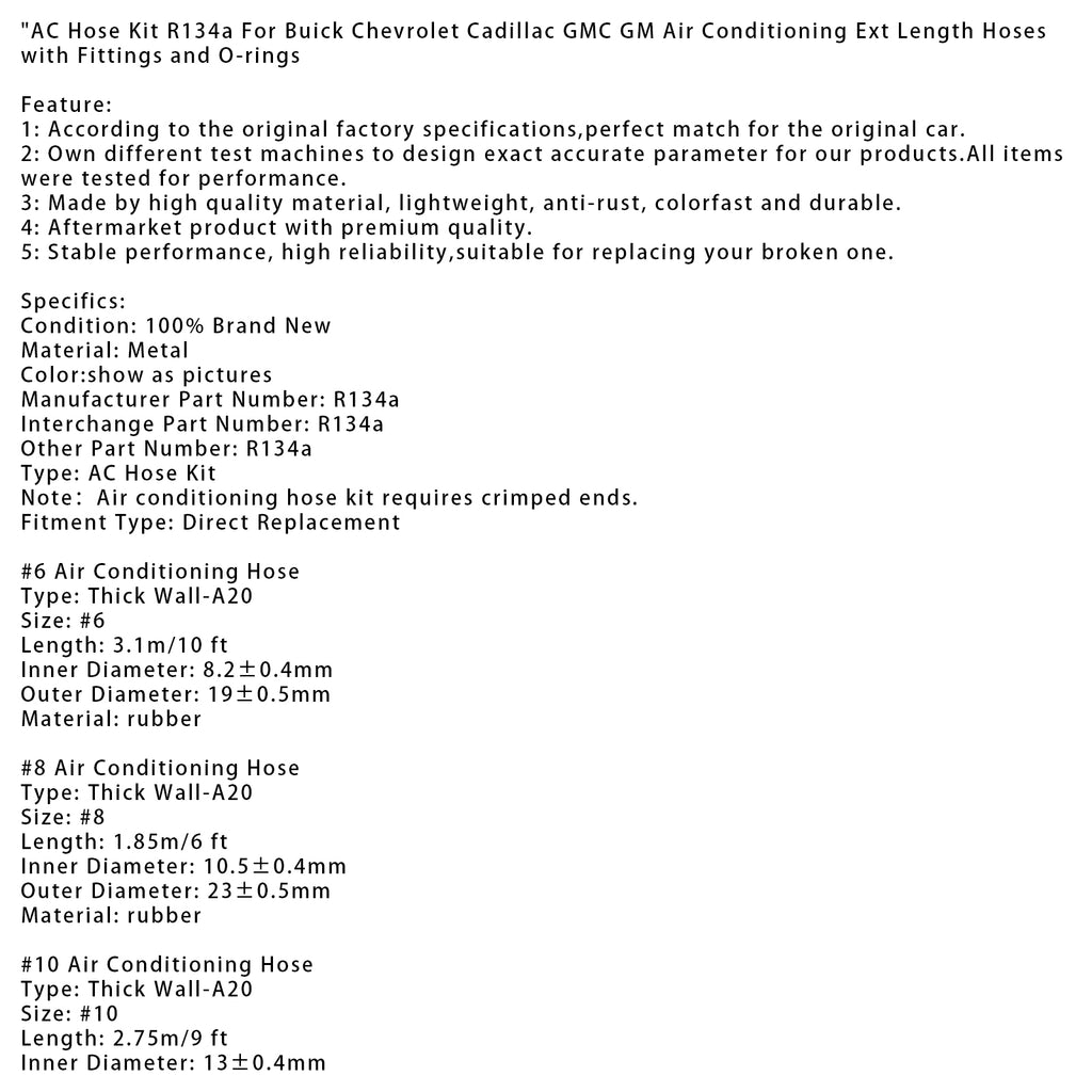 AC Hose Kit R134a For Buick Chevrolet Cadillac GMC GM Air Conditioning Ext Length Hoses with Fittings and O-rings
