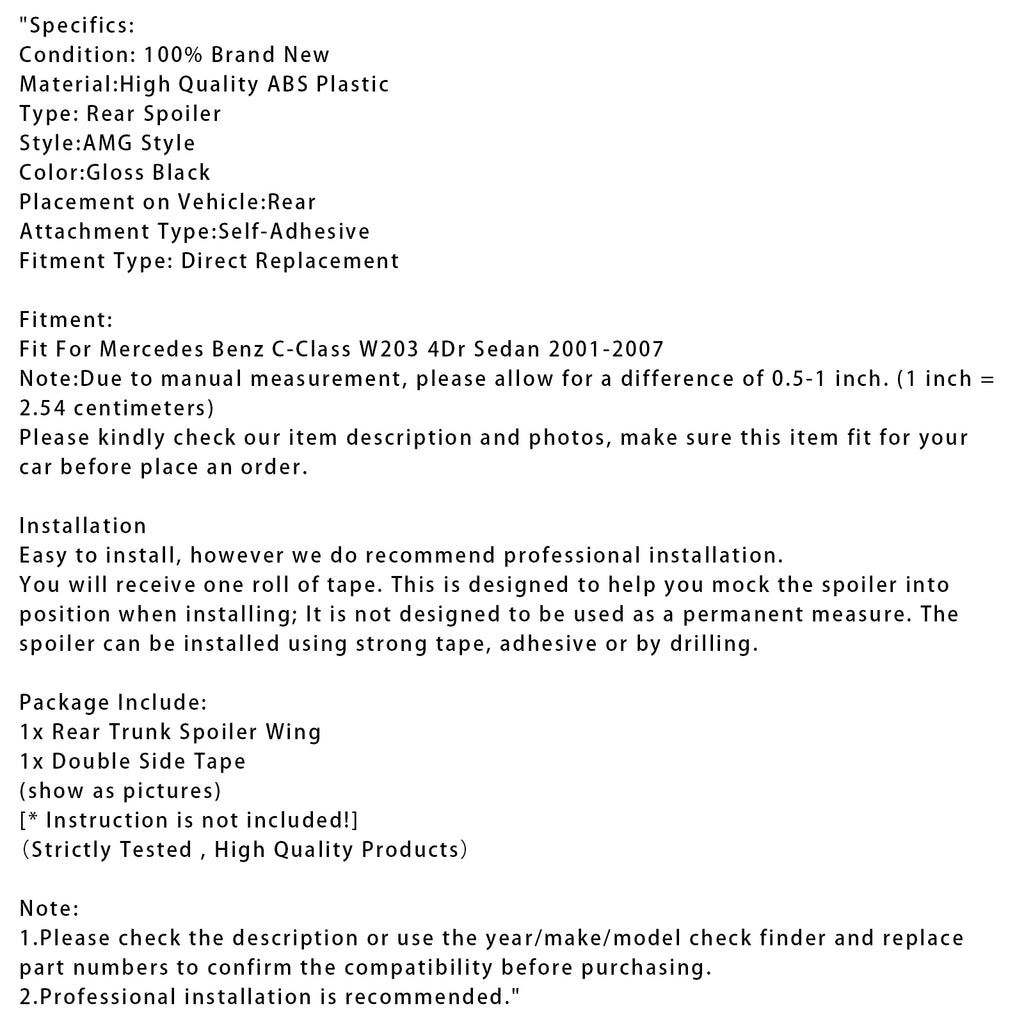 Becquet arrière noir brillant pour Mercedes-Benz Classe C W203 01-07 Berline Style AMG