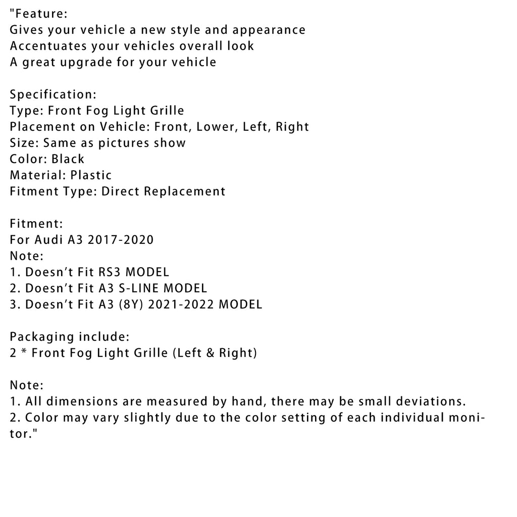 2017-20202020 AUDI A3 Bumper Grill Fog Light Cover Lemp Frame Trim