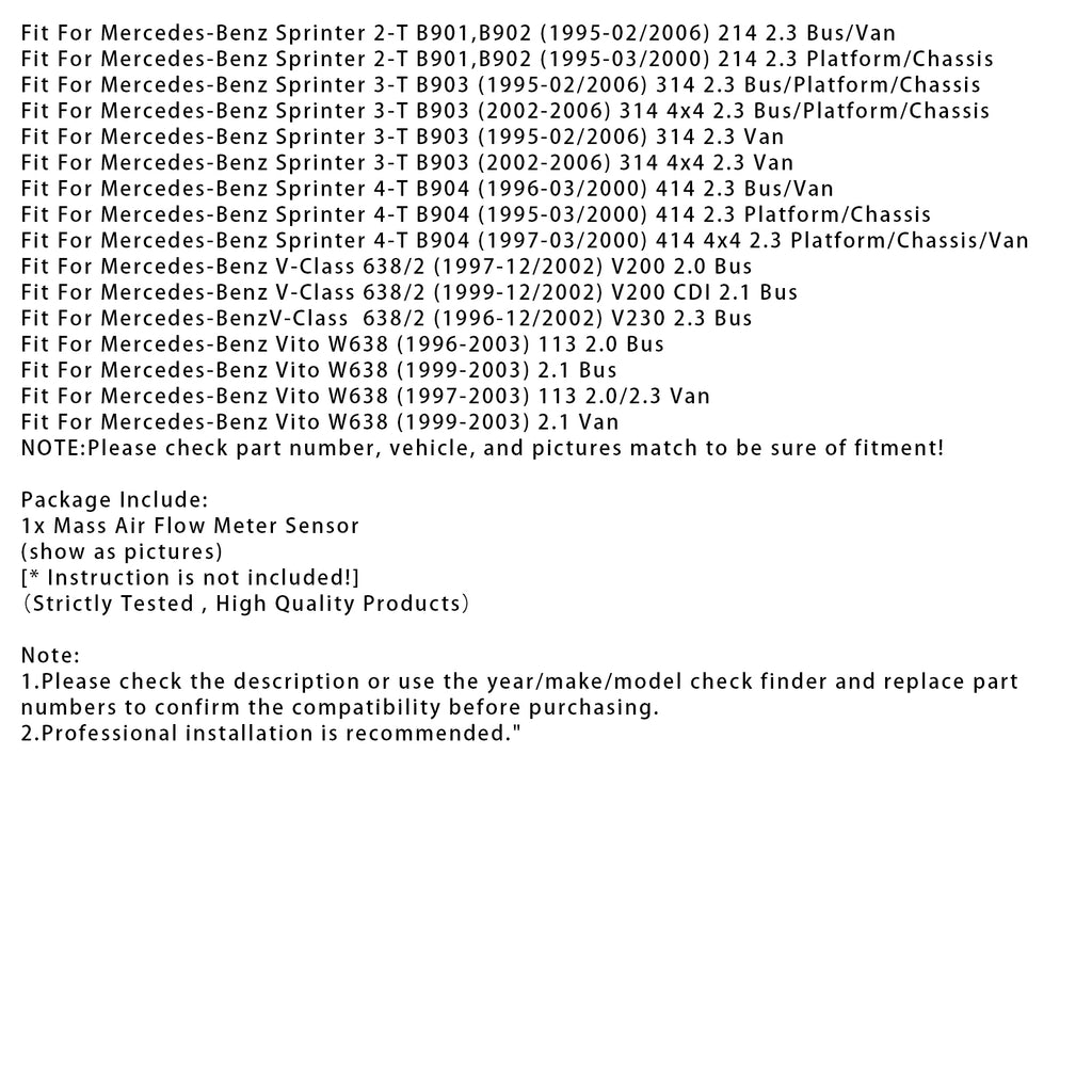 Convient pour Mercedes-Benz Classe V 638/2 (1999-12/2002) V200 CDI 2.1 Bus