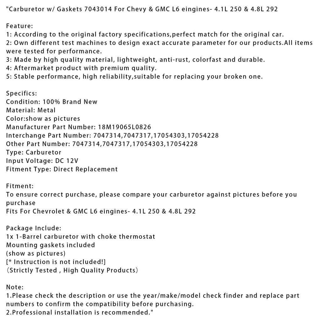 Pour garantir un achat correct, veuillez comparer votre carburateur avec les photos avant d'acheter